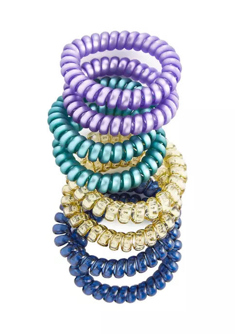 This 8 pack of coil scrunchies from TRUE CRAFT includes metallic and glitter material scrunchies.