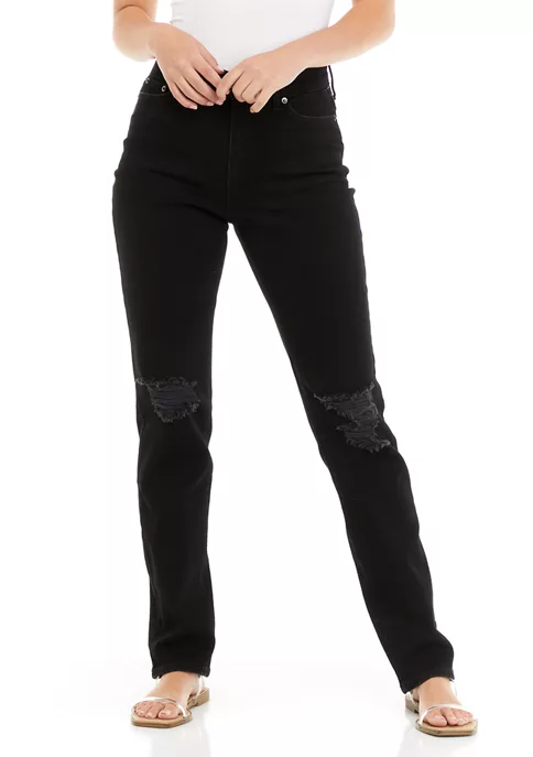 Cut in a curvy fit, these high-rise straight jeans from TRUE CRAFT feature distressed details for a well-worn look.