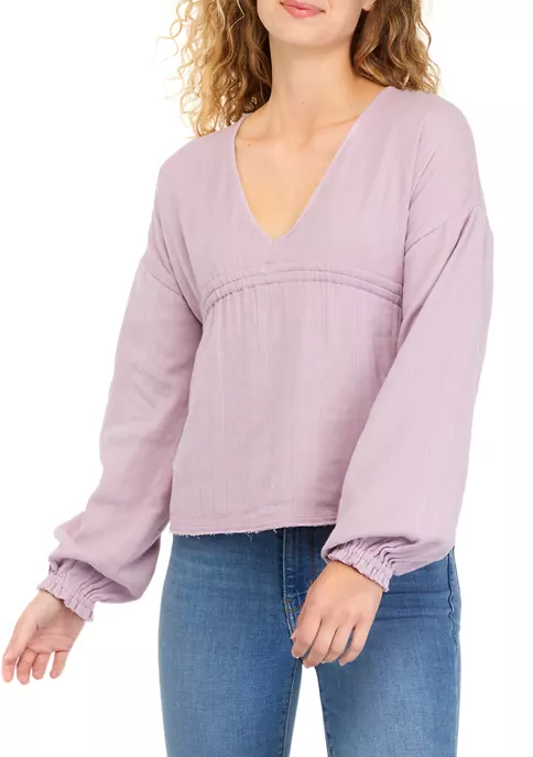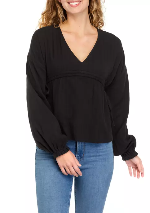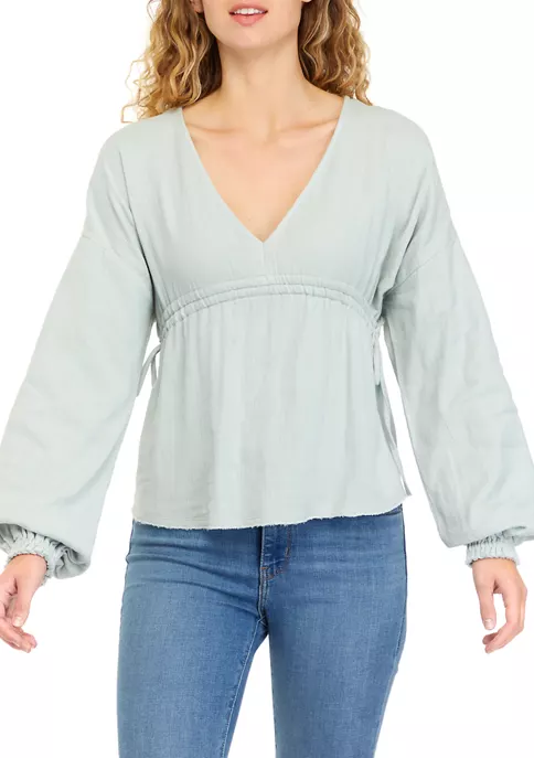 Drop-shoulder sleeves, a cinched center, and a deep V-neck add to the slouchy appeal of this breezy cotton top from TRUE CRAFT.
