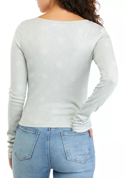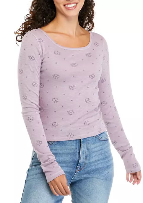 Hitting just below the natural waist, this long sleeve t-shirt from TRUE CRAFT features a scoop neckline and slub rib textured fabric.