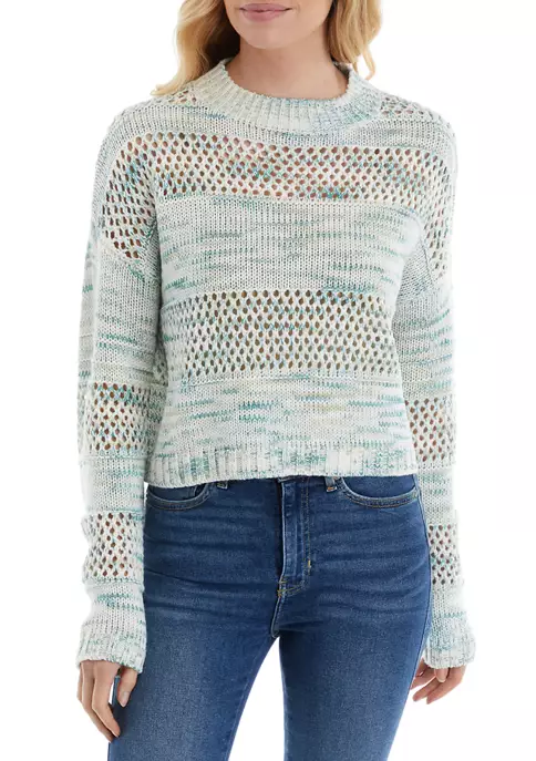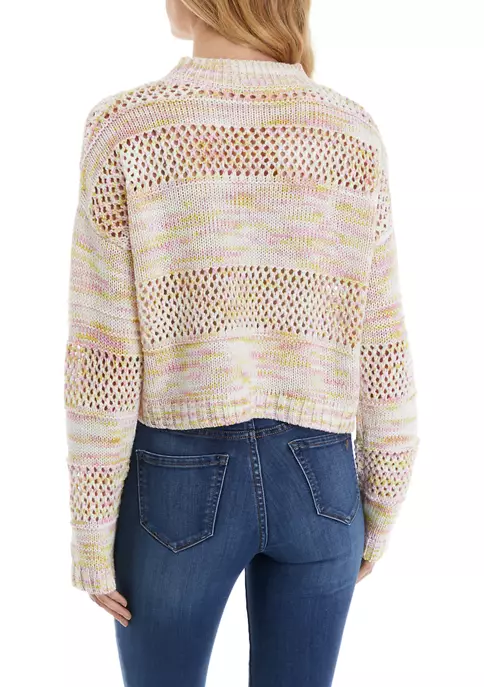 A modern mock neck enhances the cozy fit of this colorful knit sweater from TRUE CRAFT.