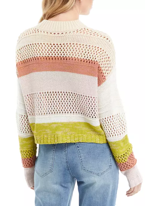 Color block stripes add fun fashion to this classically cut mock neck sweater from TRUE CRAFT.