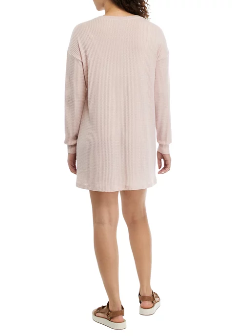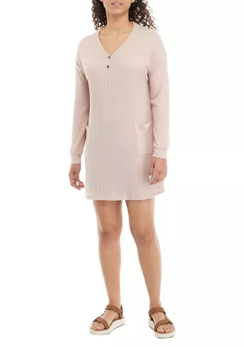 Crafted in a textured waffle knit fabric, this long sleeve Henley dress from TRUE CRAFT is a cozy pick for nighttime wear.