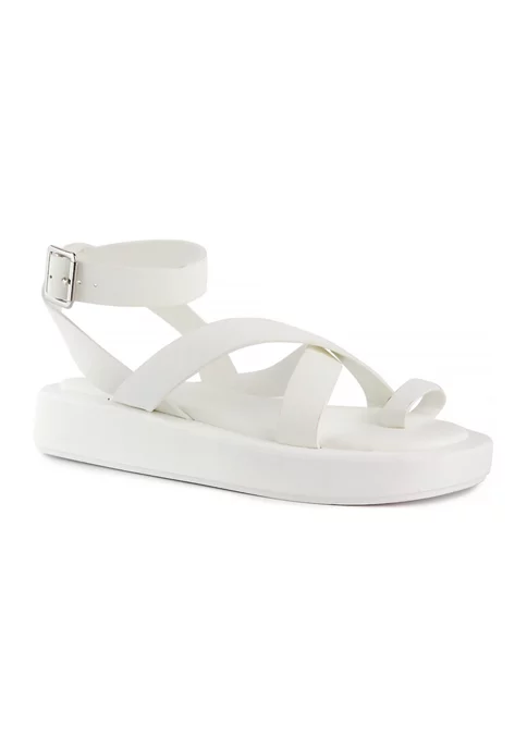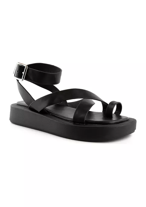 A toe thong accent and strappy silhouette update the allure of the platform Magnet Sandals from TRUE CRAFT.