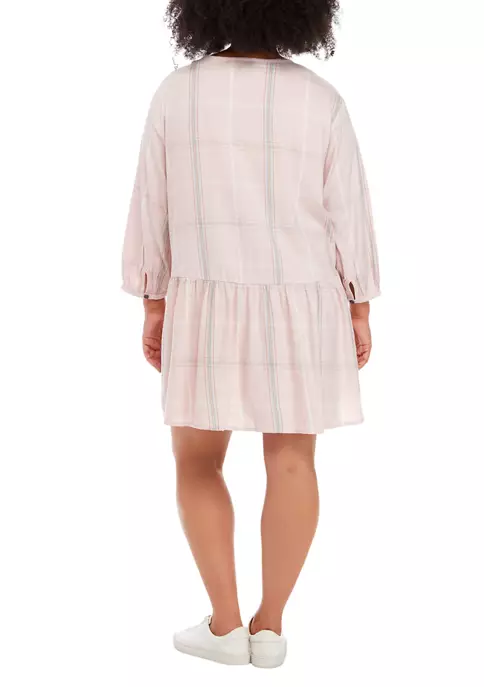3/4 balloon sleeves, a V-neck with a functional placket, and a peplum hem with a slight high-low functional placket merge to form this flowy cotton dress from TRUE CRAFT.