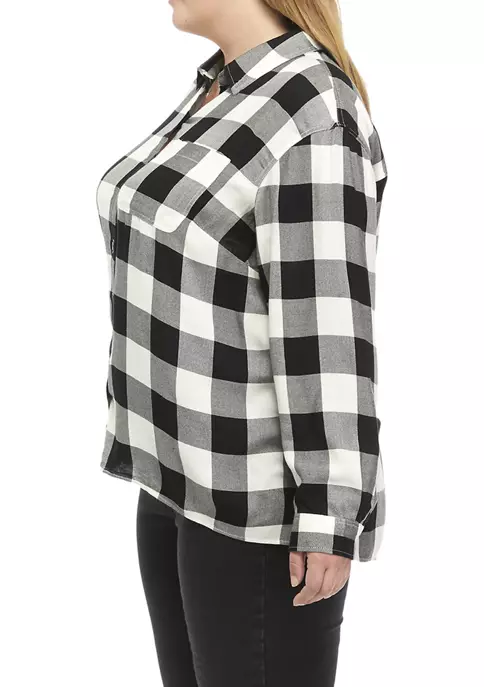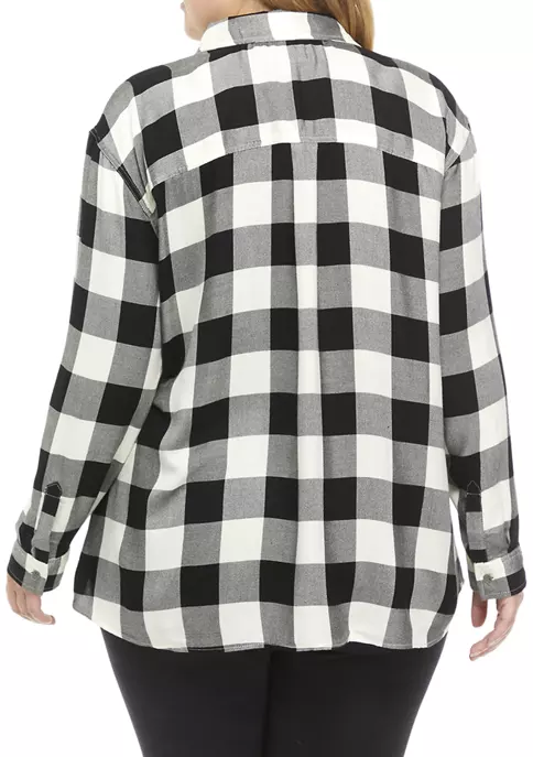 Designed with an authentic washed effect, this plaid boyfriend button-down shirt from TRUE CRAFT is updated with side-split details and is cut in a relaxed fit.