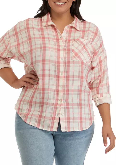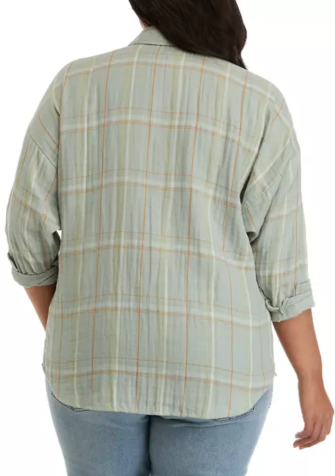 Perfect for layering over your favorite crop top, this relaxed-fitting boyfriend t-shirt from TRUE CRAFT features drop shoulders, and a full button-down design in breezy double-cloth fabric with a solid interior for an added pop.