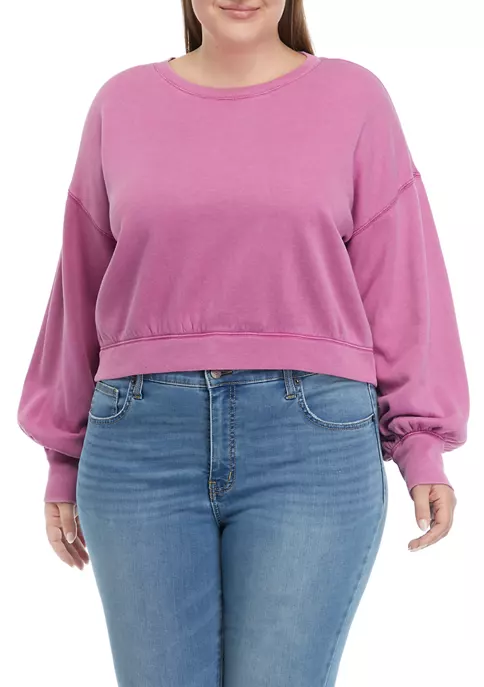 Cut in a cropped silhouette, this pullover is updated with drop-shoulder blouson sleeves for slouchy allure.
