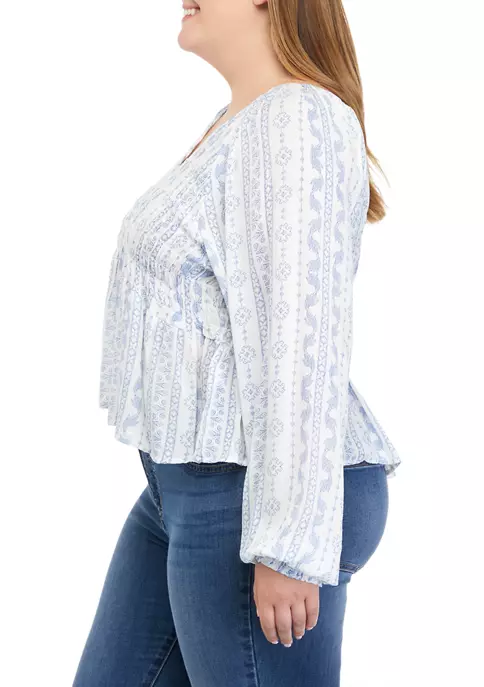 A smocked bodice effortlessly anchors the whimsical silhouette of this blouson sleeve top from TRUE CRAFT.