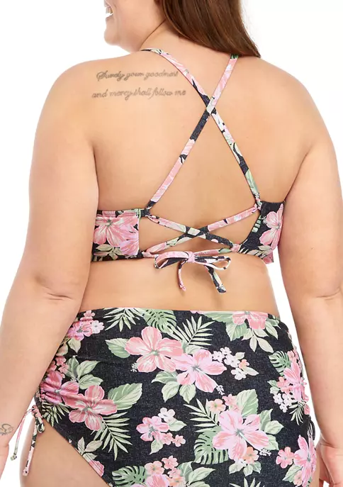 Tropical florals teem charmingly on this flounce swim bralette from TRUE CRAFT.