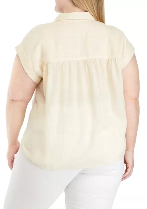 Blending the classic appeal of a crisp shirt with a cropped, contemporary touch, this style from TRUE CRAFT features a high low hem and flattering shirring at the front yoke seam.