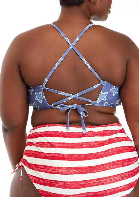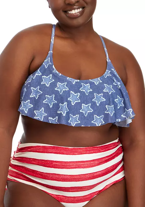 Add some star-spangled spirit to your swimwear with this flounce bralette swim top from TRUE CRAFT!