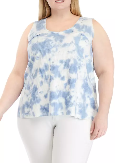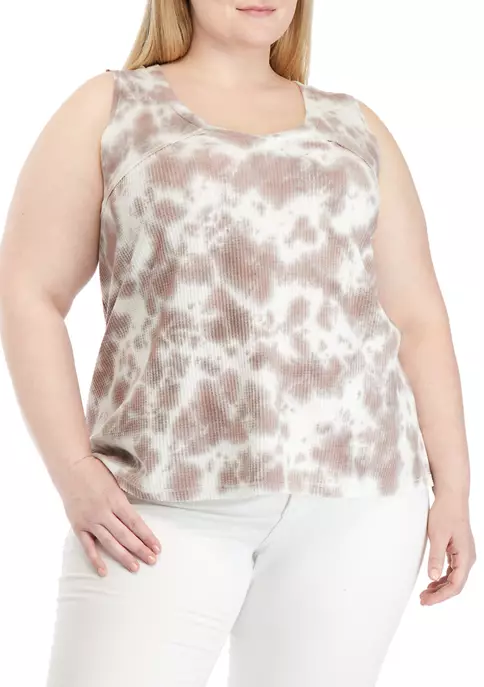 Waffle knit fabric and a trendy tie-dye design makes this TRUE CRAFT tank a fun pick for sunny days.