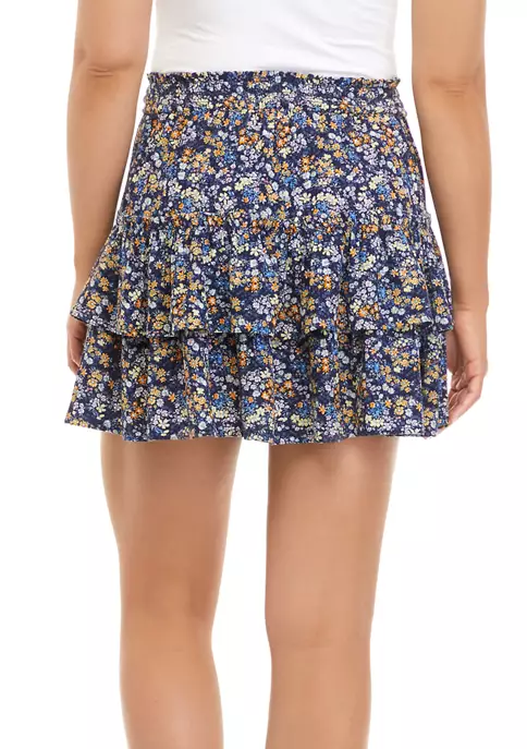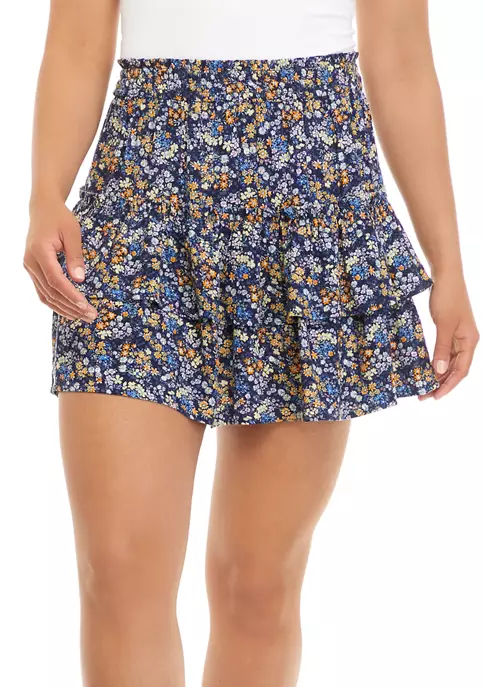 A tiered silhouette accentuates the femininity of this mini skirt from TRUE CRAFT that’s covered in a sweet wildflower print.