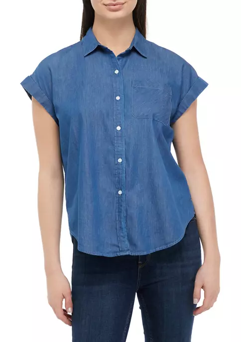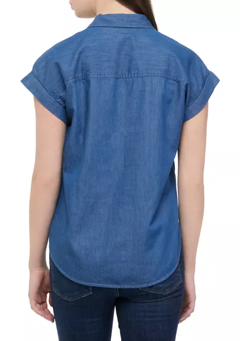 Combining a masculine silhouette with feminine style, this short sleeve camp shirt from TRUE CRAFT is finished in a rounded hem for added coverage.