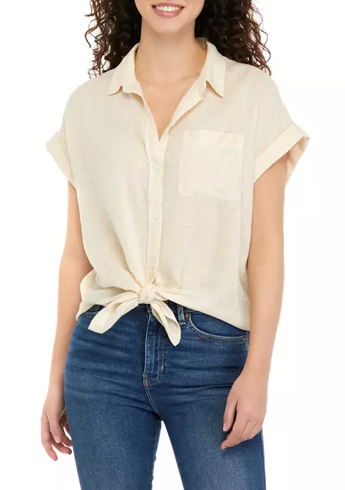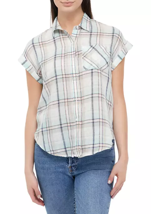 Combining a masculine silhouette with feminine style, this short sleeve camp shirt from TRUE CRAFT is finished in a rounded hem for added coverage.