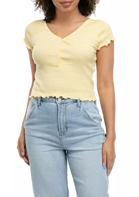 Updated with an iconic Henley neckline, this cropped short-sleeved shirt is detailed with frayed edging for a worn-in touch.
