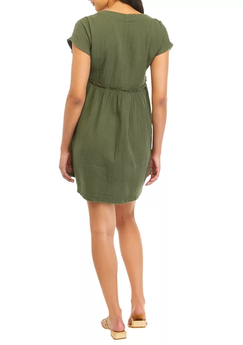 A lace-up neckline and capped sleeves offer minimalistic yet chic style to this dress from TRUE CRAFT.