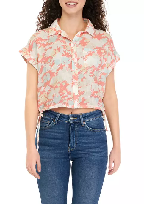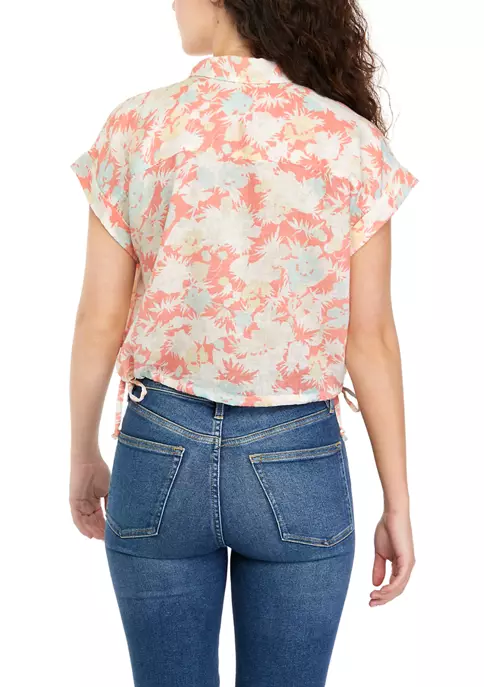 Functional side ties and a tacked at the bottom hem make this camp shirt from TRUE CRAFT perfect for casual days.