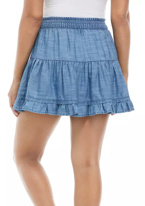 Made out of a sumptuous cotton blend, this chic skirt is designed with a tiered silhouette and ruffles around the hem.