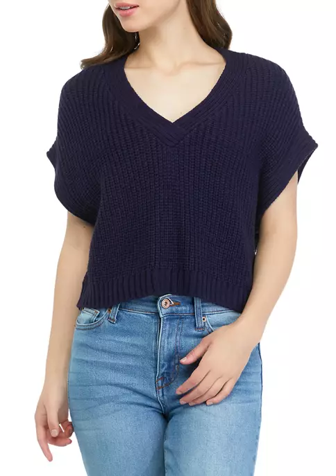 Designed to hit just below the natural waist, this boxy-fit sweater vest from TRUE CRAFT features a shaker stitching with ribbed trim.
